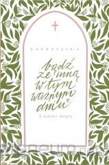 Otwierana kartka, pusta w środku, wykonana na papierze (z certyfikatem EFC) z wyraźnie widoczną fakturą. W zestawie ekologiczna koperta.