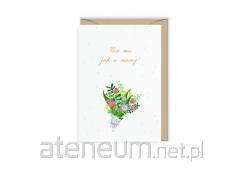 Otwierana kartka, pusta w środku, wykonana na papierze (z certyfikatem EFC) z wyraźnie widoczną fakturą. W zestawie ekologiczna koperta.