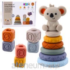 Zestaw zawiera kolorowe klocki z motywami zwierzątek oraz elementy o różnych kształtach i fakturach. Różnorodne powierzchnie sensoryczne stymulują zmysł dotyku, a pastelowa kolorystyka pobudza wzrok dziecka. Klocki można układać, ściskać oraz dopasowywać, co wspiera rozwój koordynacji ręka oko, zdolności manualnych oraz logicznego myślenia.