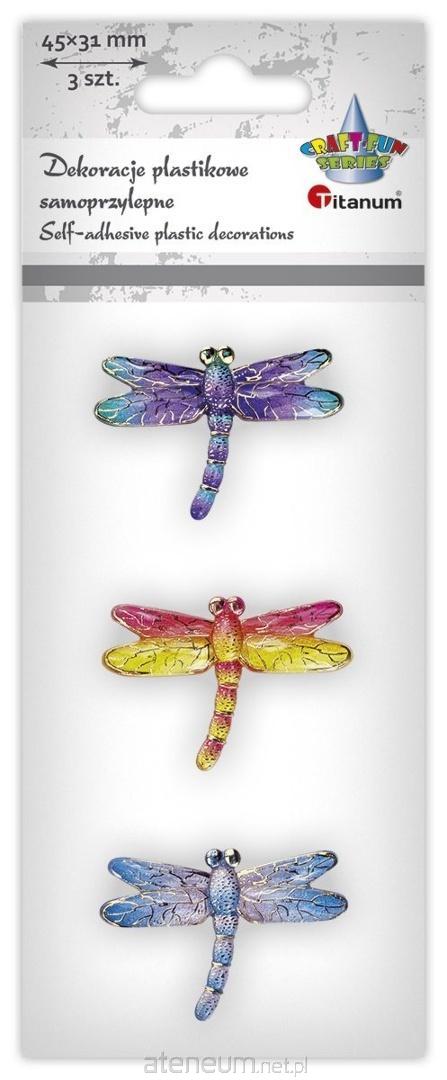 Dekoracje samoprzylepne plastikowe ważki 45x31mm 3 kolory: fioletowa, żółta, niebieska 3szt.