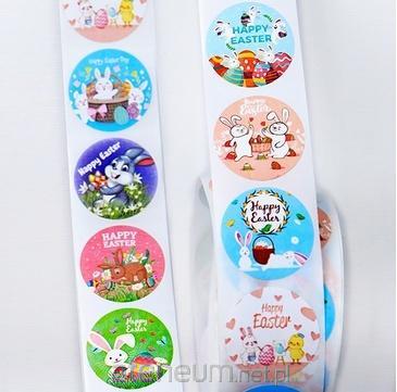Naklejki papierowe na taśmie 8 wzorów Wielkanoc O25mm 500szt.