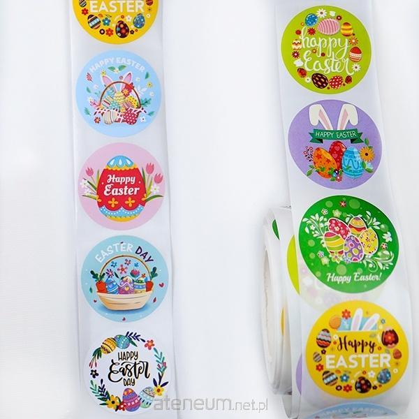 Naklejki papierowe na taśmie 8 wzorów Wielkanoc O25mm 500szt.