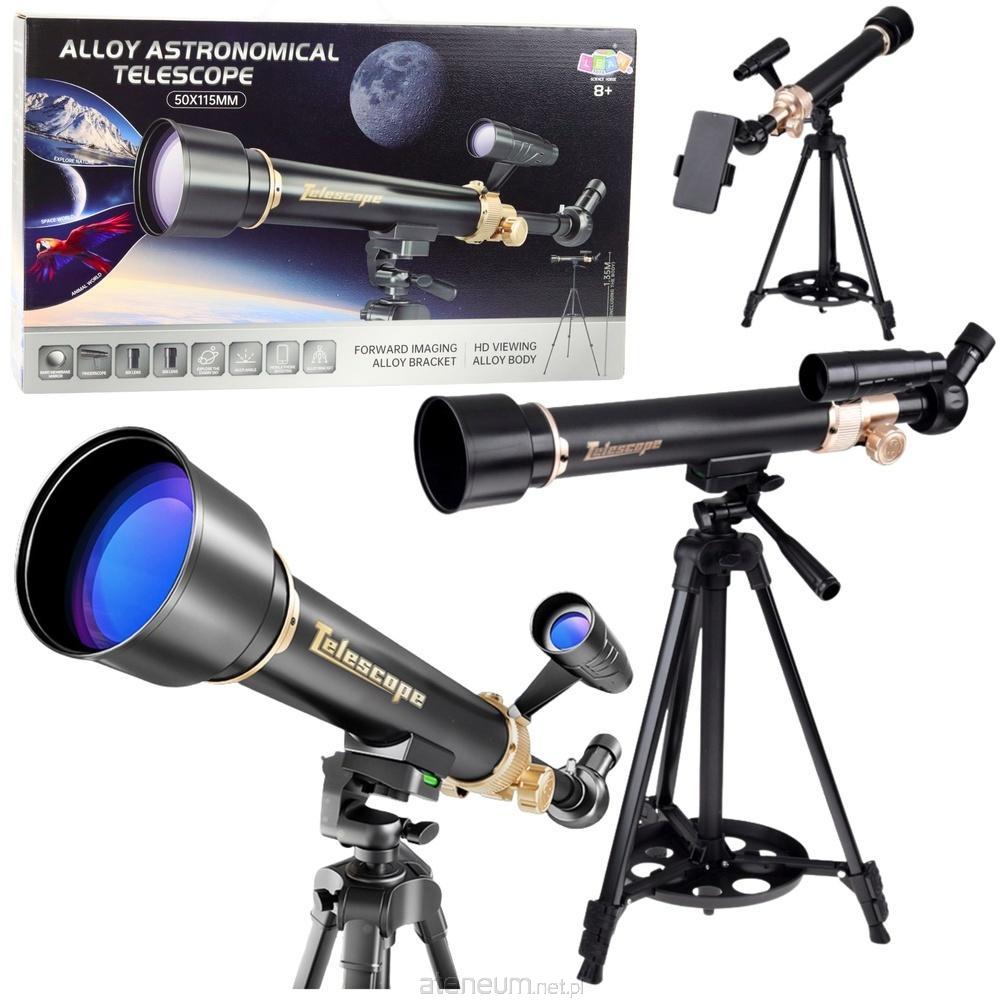 TELESKOP ASTRONOMICZNY ALUMINIOWY 50X115MM Z STATYWEM I AKCESORIAMI