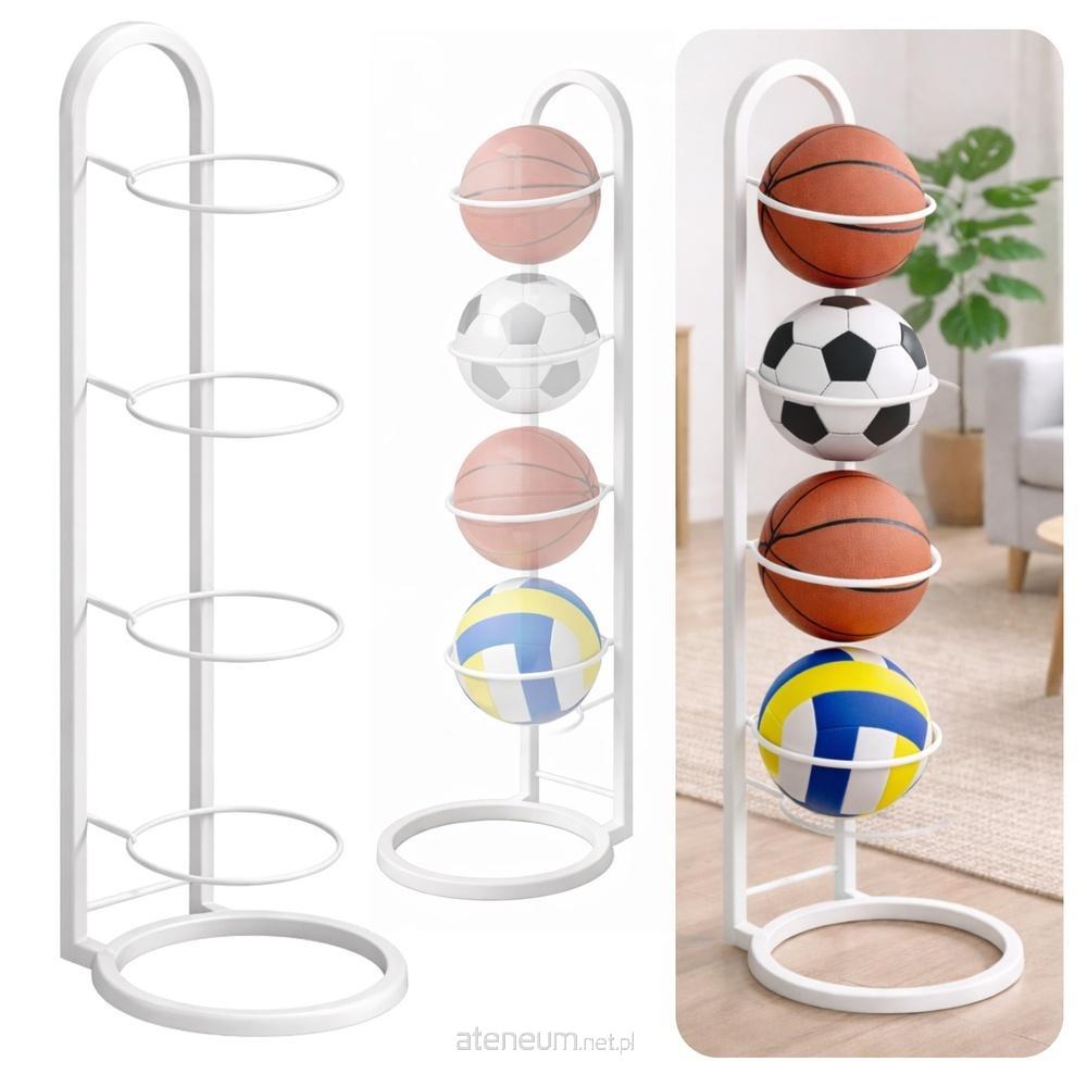 Stojak posiada 4 poziomy przeznaczone na piłki do koszykówki, siatkówki lub piłki nożnej. Każdy poziom stabilnie podtrzymuje piłkę, zapobiegając jej przemieszczaniu się. To idealne rozwiązanie dla osób aktywnych fizycznie oraz rodzin z dziećmi, które chcą uporządkować przestrzeń.