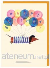 Karnet kwadrat 055 Urodziny Latający jamnik