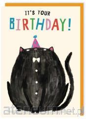 Karnet kwadrat 002 Urodziny Imprezowy kot