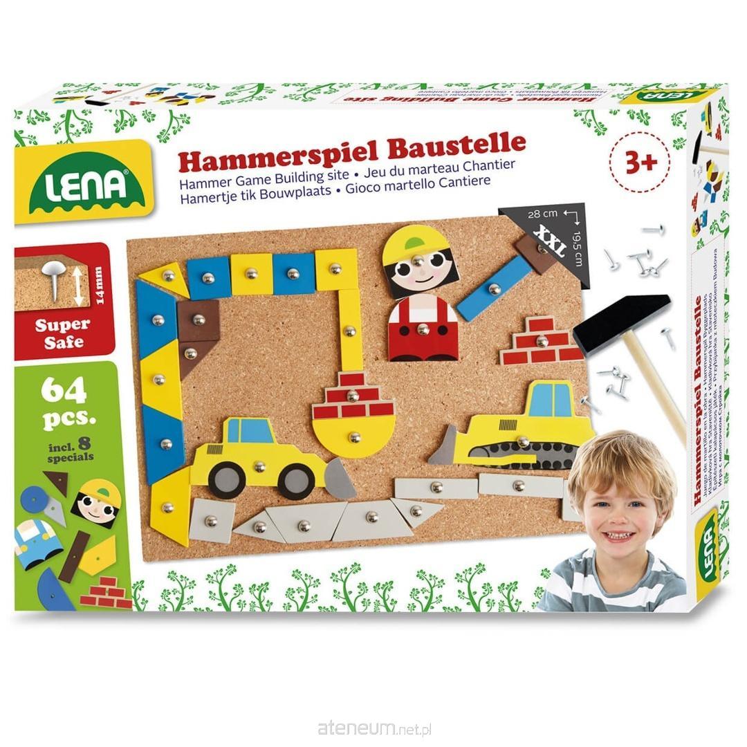 Szukasz zabawki, która rozwija sprawność manualną i pobudza wyobraźnię dziecka? Chcesz połączyć zabawę z ćwiczeniem koordynacji ruchowej? Gra z młotkiem "Plac budowy" to kreatywna układanka, w której dziecko tworzy własne kolorowe kompozycje, przybijając drewniane elementy do korkowej tablicy.
