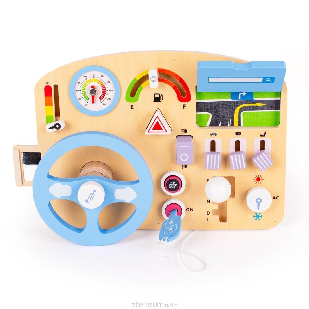 To realistyczny panel samochodowy w wersji przyjaznej dzieciom - tablica pełna ruchomych elementów, przełączników Idealny, aby rozwijać małą motorykę, koordynację oraz pobudzać wyobraźnię.