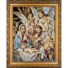 Haftowany Obraz w Złotej Ramie Święta Rodzina - Wspólna Modlitwa, 22x27,5 cm