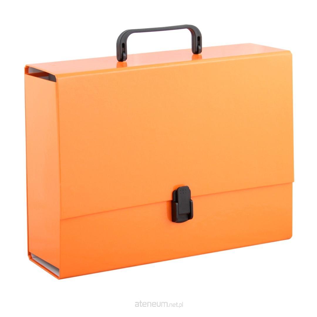 Wykonana z tektury 1,7mm, nitowane boki z okleinowanymi krawędziami. Okleina w jednolitym kolorze uszlachetniona błyszczącą folią polipropylenową, Wymiary w cm: 32x24,5x10