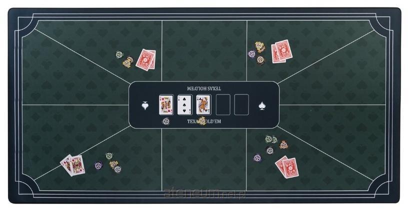 Wykonana z poliestru i gumy zielona mata pokerowa o wymiarach 177 x 89 cm zapewnia stabilną i gładką powierzchnię do gry. Idealny do profesjonalnej gry w pokera w domu.