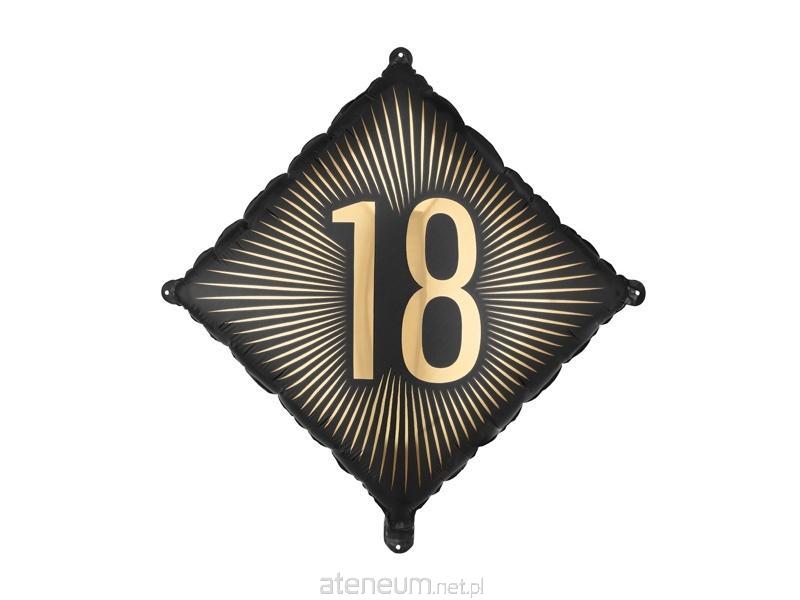 Balon foliowy w kolorze czarnym ze złotym napisem 18 Wymiary przed napompowaniem ok. 54 x 54 cm (20 x 20\\'\\'), wymiary po napompowaniu ok. 46 x 46 cm). Do napompowania powietrzem i helem. Zestaw zawiera słomkę.