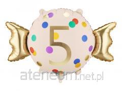 Balon foliowy Cukierek \\'\\'8\\'\\', w kolorze beżowo-złotym. Wymiary przed napompowaniem ok. 76,5 x 48 cm (30,1 x 18,9\\'\\'), wymiary po napompowaniu ok. 61 x 37 cm (24 x 14,6\\'\\'). Do napompowania powietrzem i helem. Zestaw zawiera słomkę.