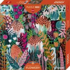 Puzzle HEYE przedstawiające grafikę "Flowery, Rubinowe słońce, Bernadette Twomey, 1000el. "się z 1000 elementów.\nPo ich ułożeniu otrzymamy obraz o wymiarach 56 x 56 cm.