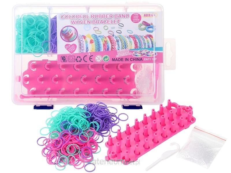 W zestawie: kolorowe gumki recepturki, akcesoria do robienia bransoletek; funkcje: zestaw pozwala na tworzenie autorskich bransoletek; 6+