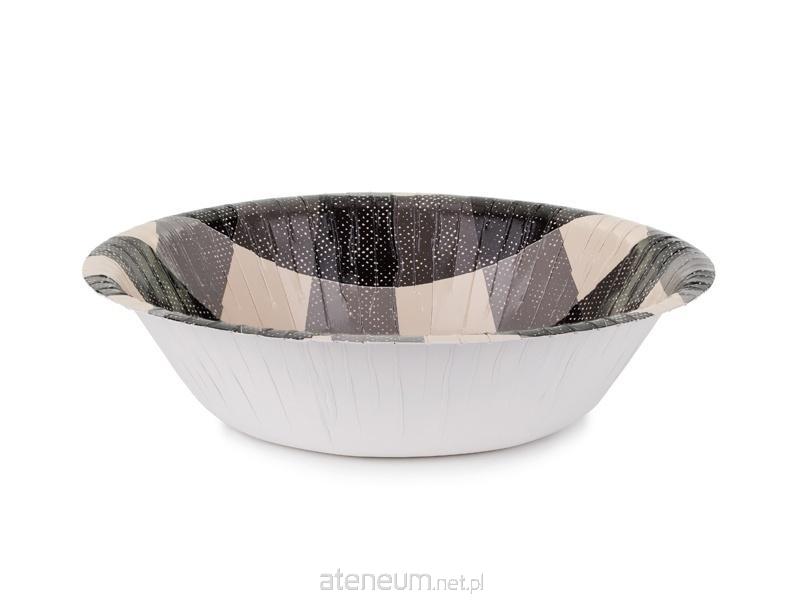 Miseczki papierowe w kratkę, czarno-szaro-kremowe, średnica ok. 17 cm, wysokość ok. 4.5 cm.(1 op. / 6 szt.)