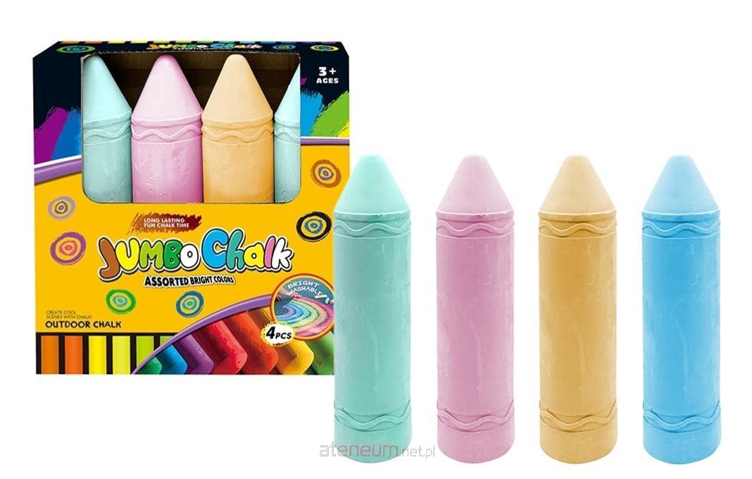 W zestawie: 4 kredy w różnych kolorach o wym.: 19 x 4,5 cm; wym. opak.: 18,5 x 19,5 x 5 cm; 3+