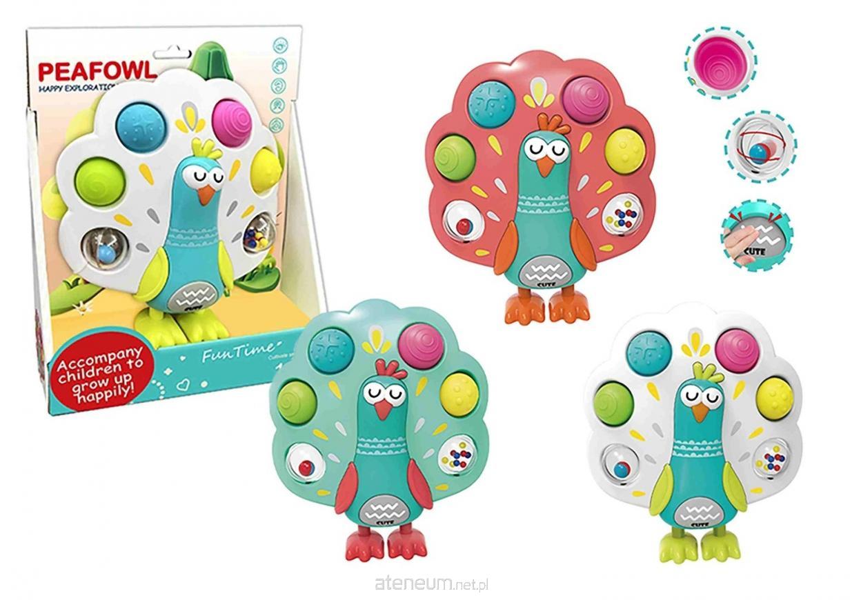 W zestawie: 2 grzechotki, piszczałka, funkcje: miękkie bąble do wciskania, 3 wzory, wym. Zabawki 19 x 17 x 4 cm, wym. Opak. 19,7 x 24,5 x 6 cm, 12m+