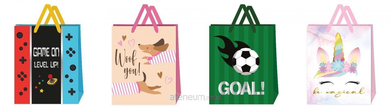 Duża torebka ozdobna w dziecięcych, kolorowych wzorach to idealne opakowanie na prezent dla najmłodszych. Doskonale sprawdzi się do zapakowania zabawek, książek, gier, pluszaków.