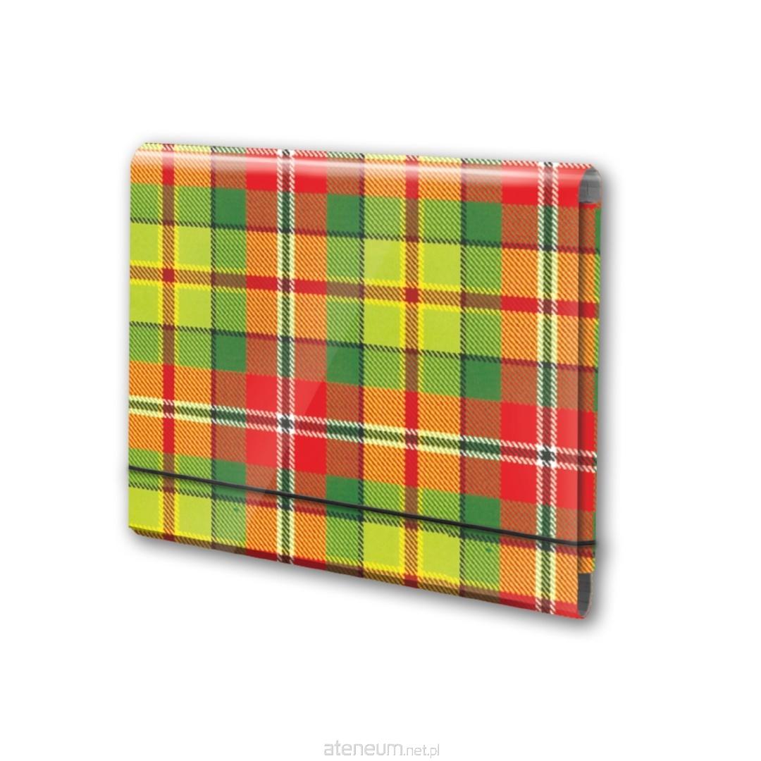 Wykonana z tektury 1,7mm, nitowane boki z okleinowanymi krawędziami. Okleina kratka uszlachetniona błyszczącą folią polipropylenową.Regulowana grubość grzbietu do 4 cm. Wymiary w cm:26x21