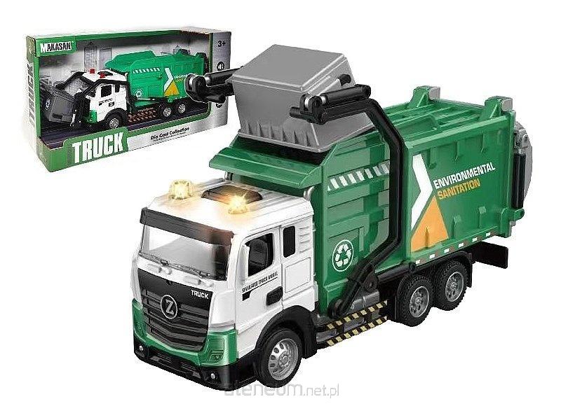 auto śmieciarka, metalowe, światła, podnoszony kontener, 21,5x12x5,5cm, 27x12x8,5cm, W/B
