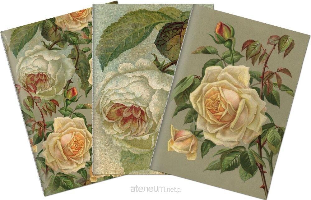Zestaw 3 ozdobny notatników w formacie A6, złączonych ozdobną wstążką.