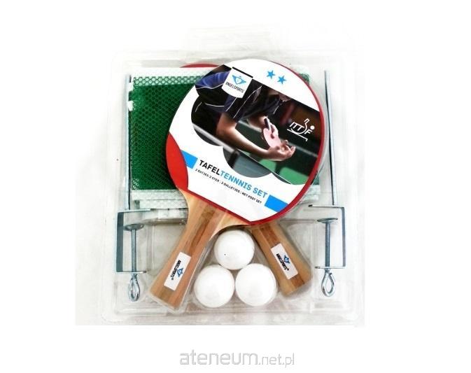 Zestaw do tenisa stołowego Angel Sports 2 gwiazdki. Zestaw zawiera 2 rakietki do tenisa stołowego, siatkę do zamocowania na stole i 3 plastikowe piłeczki, zapakowane w wygodne, przezroczyste opakowanie z możliwością zawieszenia. Idealny do użytku rekreacyjnego i idealny prezent dla miłośników tenisa stołowego.