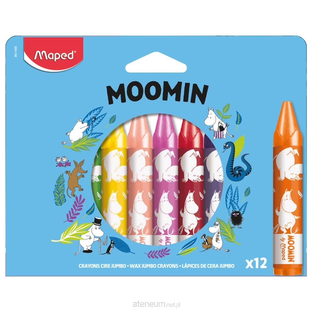 Kredki woskowe Muminki dla dzieci. Świat Muminków jest pełen wyobraźni, przyjaźni i odwagi wartości, które świetnie pasują do twórczej zabawy. Kredki z logo Muminków dodają rysowaniu odrobiny tej magii i zachęcają, by tworzyć własne historie na kartce. To idealny wstęp do kolorowania marzeń tak, jak lubią Muminki: swobodnie, radośnie i po swojemu. Kredki świecowe JUMBO z kolekcji Muminków. Idealne dla najmłodszych i nie tylko. Papierowa otulina zabezpiecza przed ubrudzeniem rąk. Gruby, trójkątny przekrój o średnicy 13 mm zapewnia intuicyjnie poprawny chwyt. Intensywne kolory, wysokiej jakości wosk wpływa na miękkie rysowanie. Nietoksyczne wyprodukowane zgodnie z wszystkimi regulacjami dotyczącymi produktów przeznaczonych dla dzieci., gruby, trójkątny przekrój, miękka konsystencja, intensywne barwy, łatwe rysowanie, grafiki licencyjne Muminki, zgodność z normami bezpieczeństwa dla produktów dziecięcych, produkt atrakcyjny wizualnie na półce.
