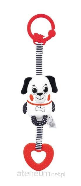 Materiałowy dzwoneczek sprawdzi się wyśmienicie w roli pierwszego towarzysza zabaw. Uszyty z kontrastowych materiałów o zróżnicowanych wzorach i fakturach, stymulować będzie zmysł wzroku i dotyku dziecka, zachęcając go przy tym do rozwijania zdolności poznawczych. Dzwoneczek, ukryty we wnętrzu uroczego pieska, zabawi pięknym dźwiękiem, samoistnie bujając się na wietrze, podczas spaceru w wózeczku, lub, będąc potrząsanym przez dziecko, podczas zabawy w domu. Zabawka wyposażona została w praktyczną zawieszkę, umożliwiającą łatwe przymocowanie dzwoneczka w dowolnym miejscu.