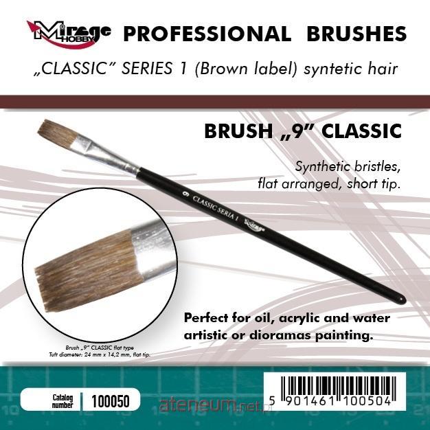 Mirage Hobby Pędzle Płaskie PROFESSIONAL Seria płaskich pędzelków o wysokiej jakości syntetycznym włosiu i krótkim trzonku. Pędzle z serii PROFESSIONAL Seria 1 idealnie nadają się do malowania po różnych powierzchniach, jak i również świetnie poradzą sobie z użyciem w technice \"suchego pędzla\" (DRY BRUSH). Idealne do pracy ze wszelkiego rodzaju farbami akrylowymi, olejnymi, wodnymi etc