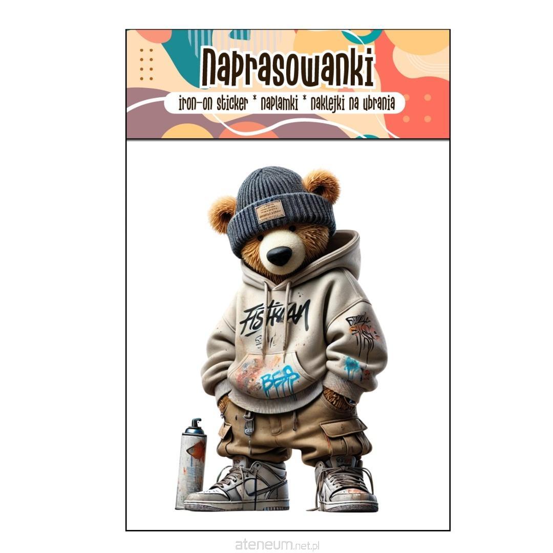 Naprasowanka prezentująca zabawną postać Misia fana graffiti.