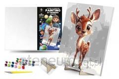 "Zestaw paint-by-numbers (malowanie po numerach) składa się z zagruntowanego płótna artystycznego na blejtramie, zestawu wysokiej jakości farb akrylowych odpornych na ścieranie i przypalanie o objętości 2,5ml 9% każda, nylonowych pędzli różnej wielkości, drewnianego stojaka oraz arkusza kontrolnego.\nOSTRZEŻENIE! Przed użyciem należy dokładnie zapoznać się z instrukcją i zasadami bezpieczeństwa, wyjaśnić dzieciom ich treść.\nZachowaj instrukcję i przestrzegaj zasad bezpieczeństwa. Niewłaściwe użycie zestawu może prowadzić do obrażeń i uszczerbku na zdrowiu.