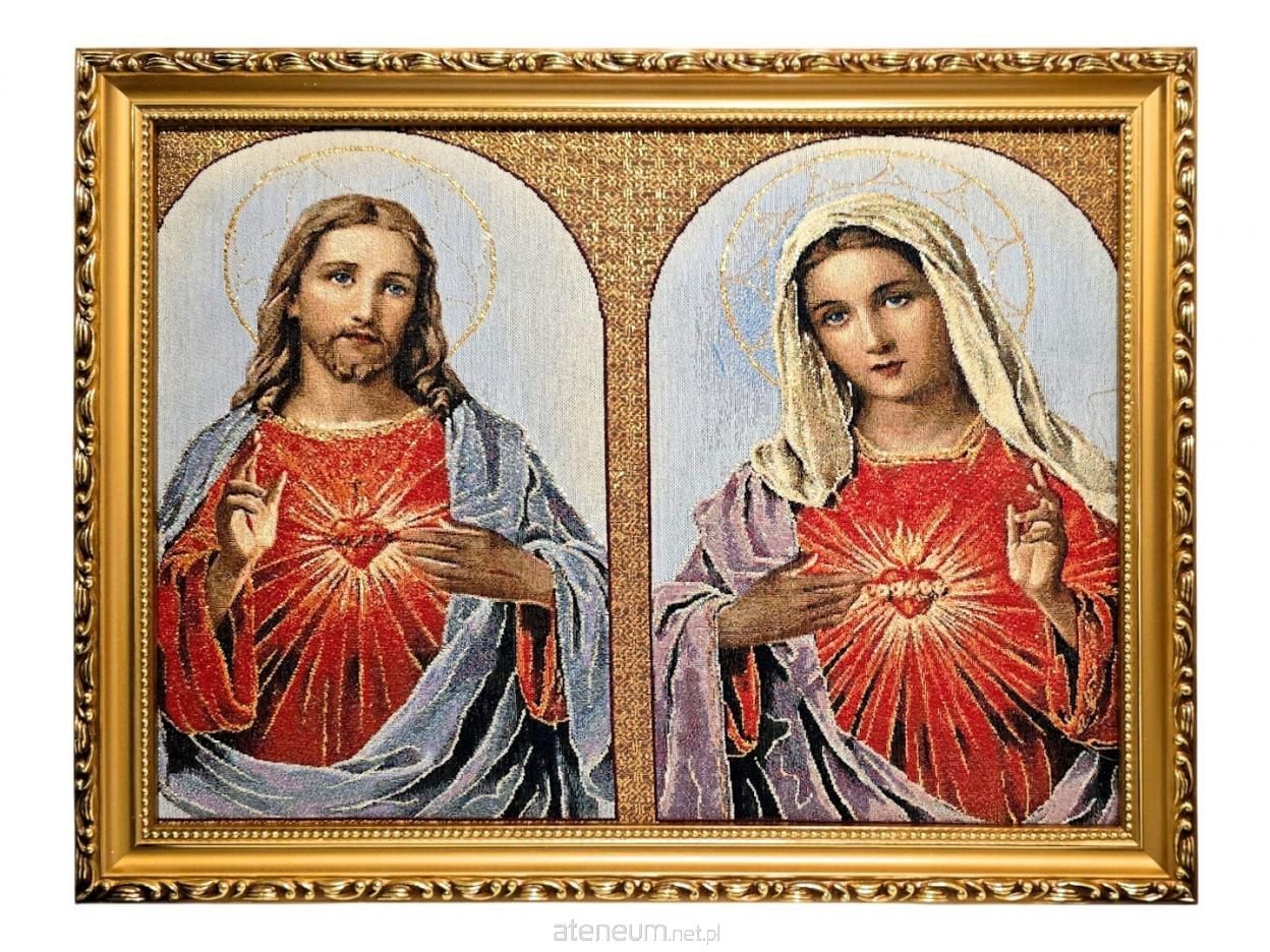 Ten kunsztownie wykonany obraz to nie tylko piękna dekoracja, ale przede wszystkim wyraz głębokiej wiary i ufności w opiekę Serca Jezusowego i Maryjnego. Każdy ścieg został wykonany z najwyższą dbałością o detale, aby oddać powagę i miłość emanującą z tych świętych wizerunków. Zastosowanie eleganckiej złotej ramy sprawia, że obraz staje się cenną pamiątką na pokolenia. To doskonały wybór dla osób pragnących wprowadzić do swojego domu błogosławieństwo i otoczyć swoją rodzinę szczególną duchową opieką.