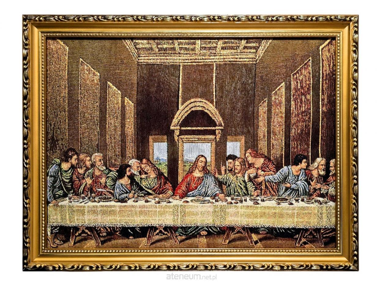 Obraz został wykonany z najwyższą dbałością o detale, tak aby w pełni oddać powagę i bogatą symbolikę Ostatniej Wieczerzy. Zastosowanie złotych nici sprawia, że wizerunek zyskuje uroczysty i sakralny charakter, mieniąc się subtelnie w świetle. Elegancka złota rama nie tylko chroni dzieło, ale podkreśla jego prestiż i piękno. Jest to idealny prezent dla osób ceniących sztukę religijną, tradycję oraz głęboką symbolikę Wieczerzy Pańskiej.