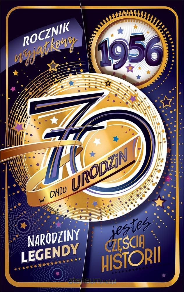 Karnet urodzinowy z rokiem urodzenia oraz najważniejszymi wydarzeniami z tego roku, złocenie, życzenia w środku