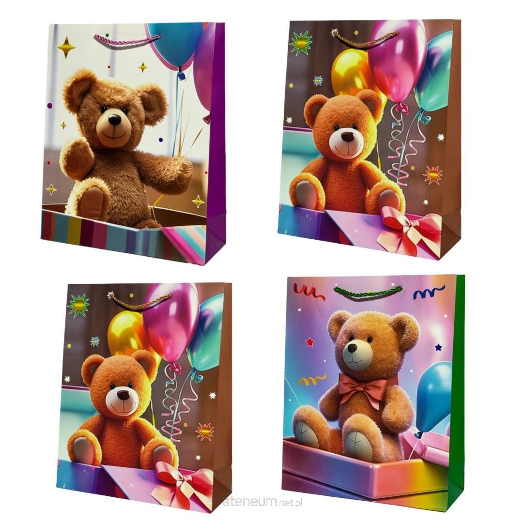 Torebka prezentowa dziecięca M Miś z balonami mix