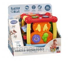 Drewniana kostka edukacyjna od VTech to doskonała zabawka interaktywna dla dzieci od 9 miesiąca życia, która wspiera rozwój motoryczny, sensoryczny i językowy maluchów. Dzięki wielofunkcyjnym elementom, takim jak świecące pianinko, sorter kształtów, labirynt z koralikami i wyjmowany telefon, dziecko uczy się kolorów, kształtów, nazw zwierząt i instrumentów muzycznych w angażujący i bezpieczny sposób.