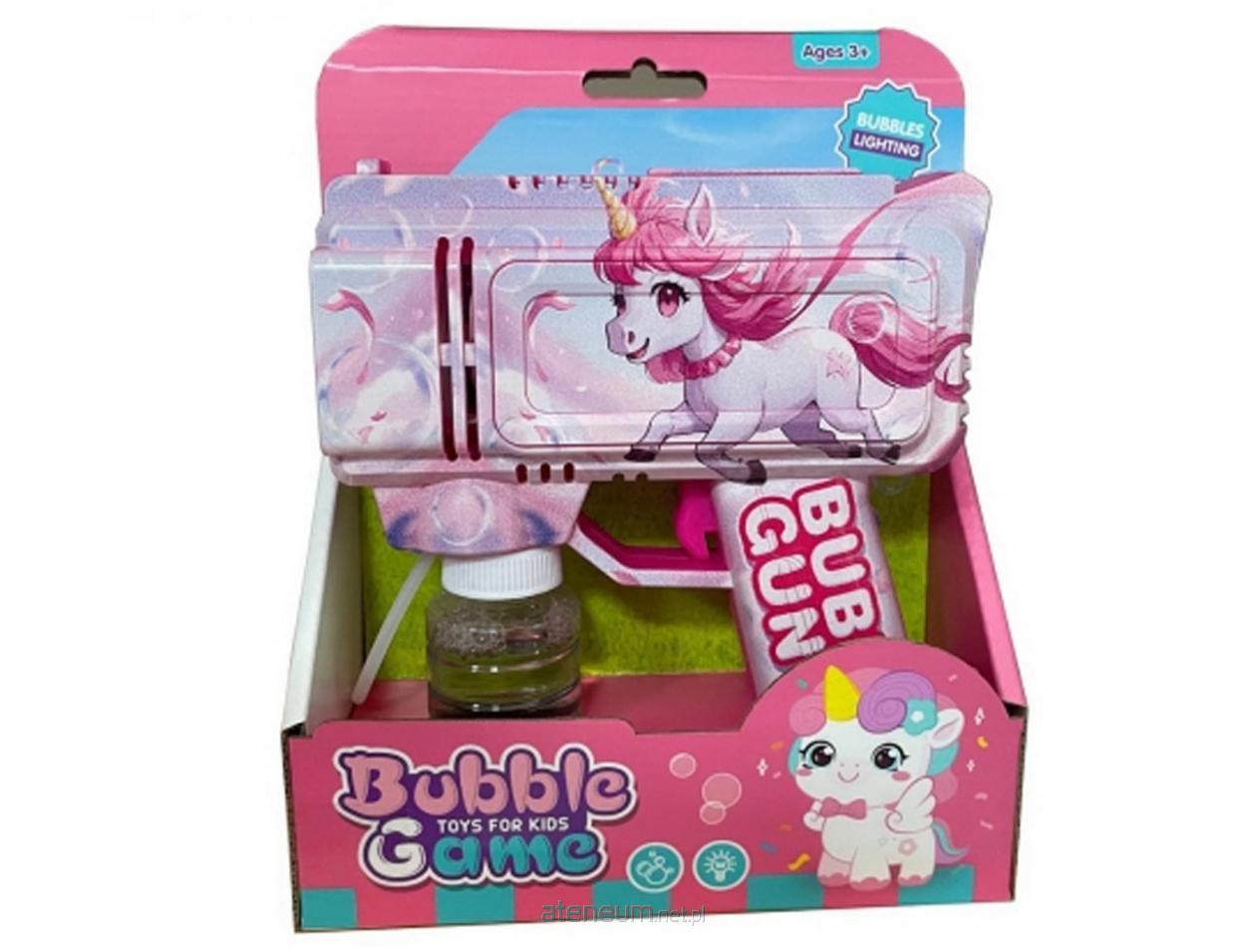 Uroczy pistolet do baniek z motywem jednorożca to doskonała zabawka dla dzieci, które uwielbiają bajkowy świat i kolorowe bańki! Wystarczy nacisnąć spust, aby w powietrzu pojawiły się dziesiątki mieniących się baniek. Dodatkowy efekt świetlny sprawia, że zabawa jest jeszcze bardziej atrakcyjna - szczególnie po zmroku. Zestaw świetnie sprawdzi się w ogrodzie, na spacerze, podczas przyjęć urodzinowych i rodzinnych spotkań. Lekka konstrukcja oraz wygodny uchwyt sprawiają, że pistolet jest łatwy w obsłudze nawet dla najmłodszych dzieci. Cechy produktu: automatyczne wytwarzanie baniek; bajkowy motyw jednorożca; efekt świetlny; w zestawie płyn do baniek; wiek: 3+. Wymiary pistoletu: długość: ok. 20 cm; wysokość: ok. 13 cm; głębokość: ok. 6 cm. Idealny pomysł na prezent, który zapewni mnóstwo radości i magicznej zabawy!