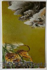 Elegancki japoński zestaw kart do gry premium z piękną, artystyczną ilustracją. Zestaw zawiera 54 karty inspirowanych klasycznym japońskim drzeworytem. Przedstawiony wzór ukazuje sumotori potężnych zapaśników sumo w tradycyjnych pasach, w dynamicznej scenie walki. Klasyczny format kart, eleganckie japońskie napisy i tradycyjna kolorystyka.