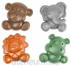 Zestaw zawiera 4 foremki w kształcie zwierzątek domowych: królik, pies, kot, papuga.
