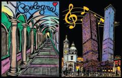 Kolorowanka z welwetowymi w dotyku konturami (pokrytymi czarnym welurem). Dzięki temu łatwiej nie wychodzić za linie, które są wypukłe, a na głębokiej matowej czerni nie widać drobnych potknięć przy kolorowaniu. Welwet nałożony jest na papier przyklejony do sztywnej tektury, dzięki czemu obraz nie wymaga ramki.