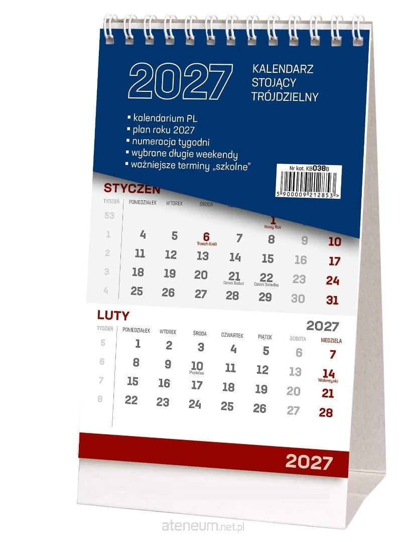 Estetyczny kalendarz stojący na biurko z przejrzystym kalendarium w układzie trzymiesięcznym. W dolnej części kartonowej podstawki istnieje możliwość wykonania nadruku reklamowego na obszarze o wymiarach 110 x 15 mm. Istnieje możliwość założenia indywidualnej okładki. W kalendarzu zaznaczone święta i daty imienin.