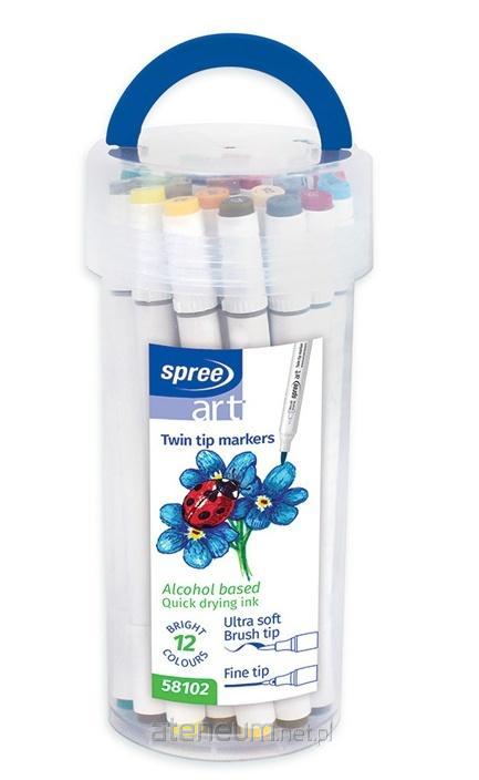 Flamastry dwustronne pędzelkowe Spree 12 kolorów