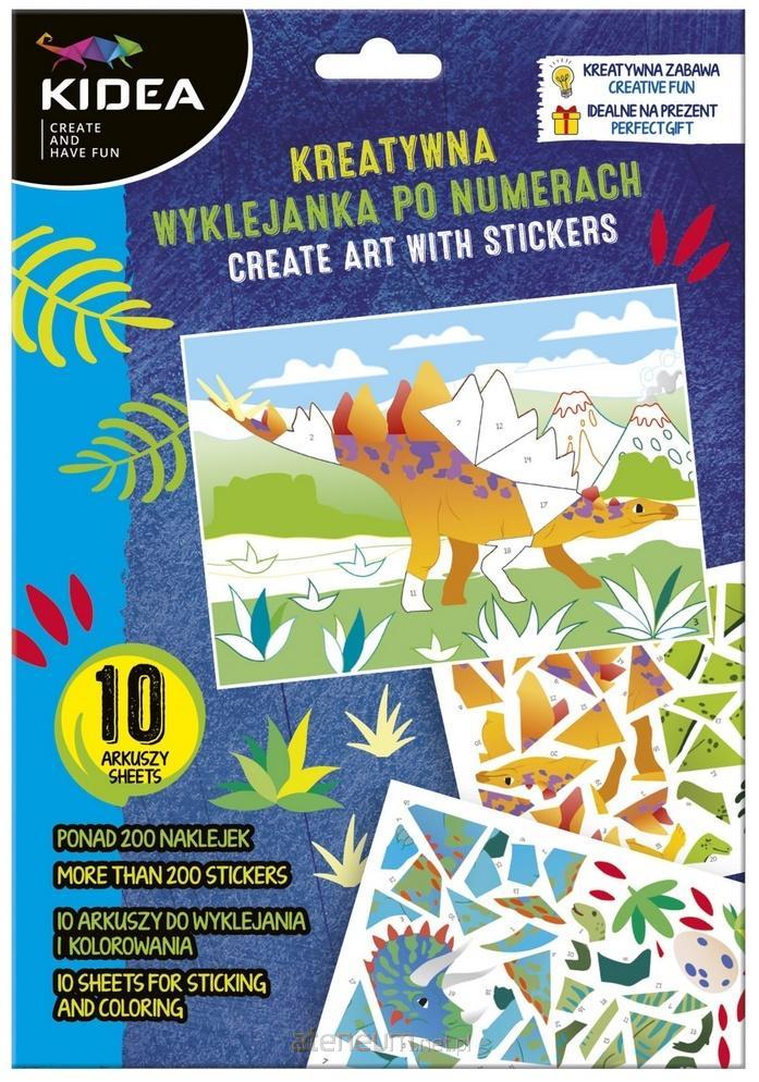 Kreatywna wyklejanka to 10 arkuszy do wyklejania po numerach i kolorowania oraz 5 arkuszy z ponad 200 naklejkami. Całość zapakowana w kolorowy folder